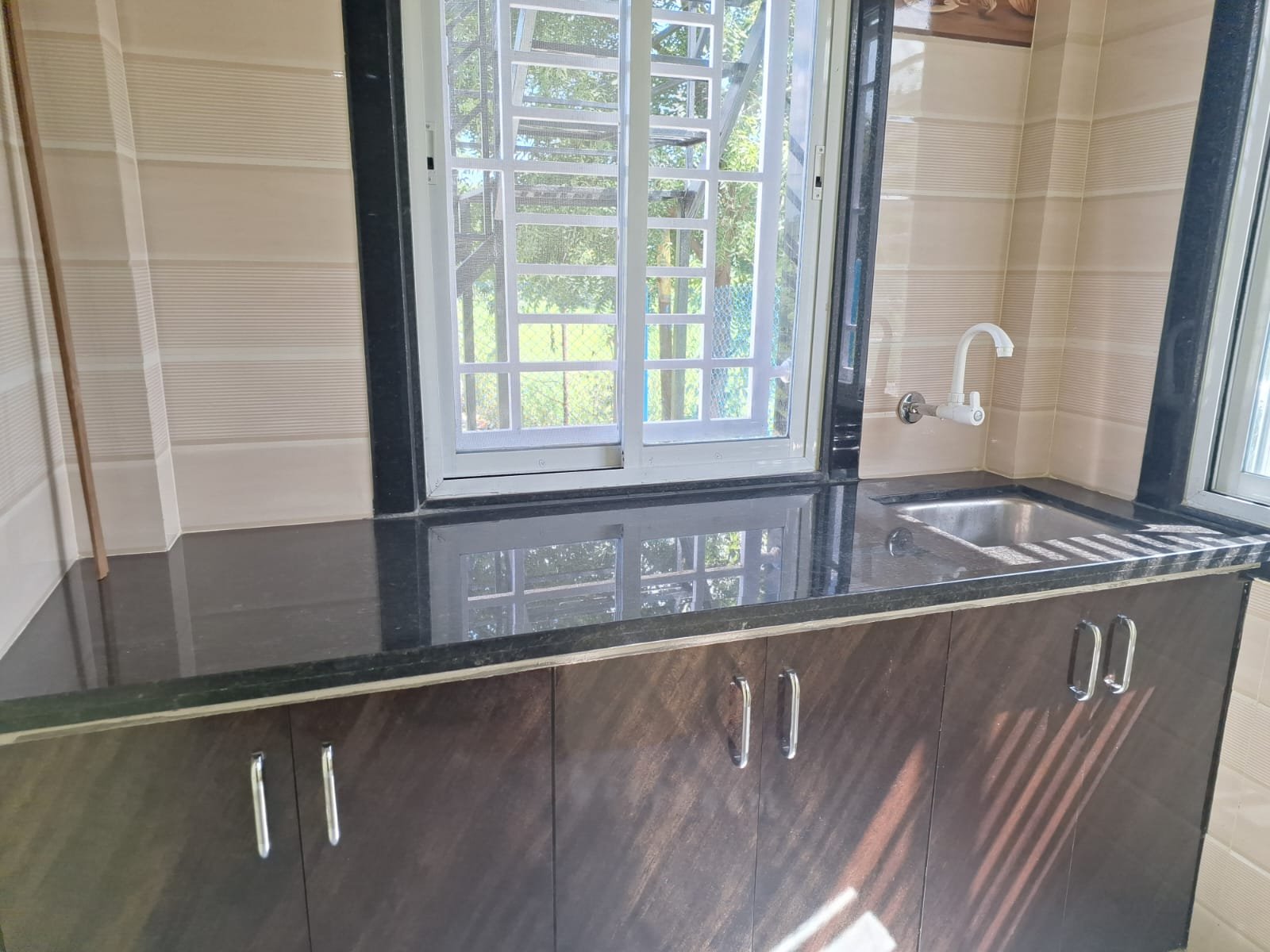 1 BHK Living roomThis is a comes with a big size living room with 42 inch Smart TV. Sofa set Garden viewComes with a garden having a swing a nice hut where you can have a dinner with family/friends KitchenComes with a kitchen area with Tea Kettle